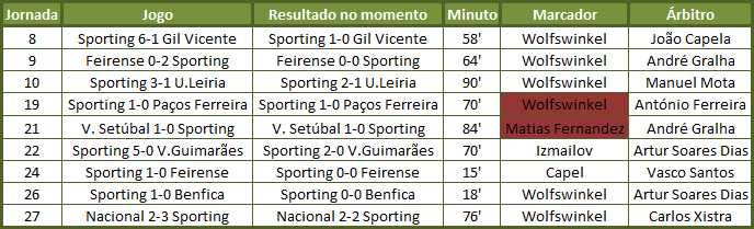 | Penaltis assinalados contra o Sporting. |