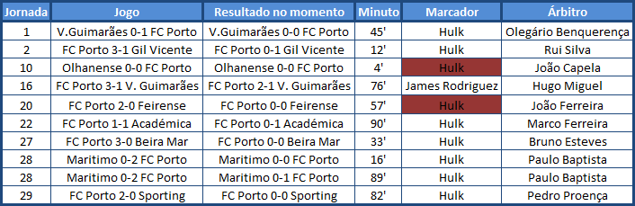 | Penaltis e cartões vermelhos assinalados a favor (fundo verde) e contra (fundo vermelho) o FC Porto a partir da 17ª Jornada |